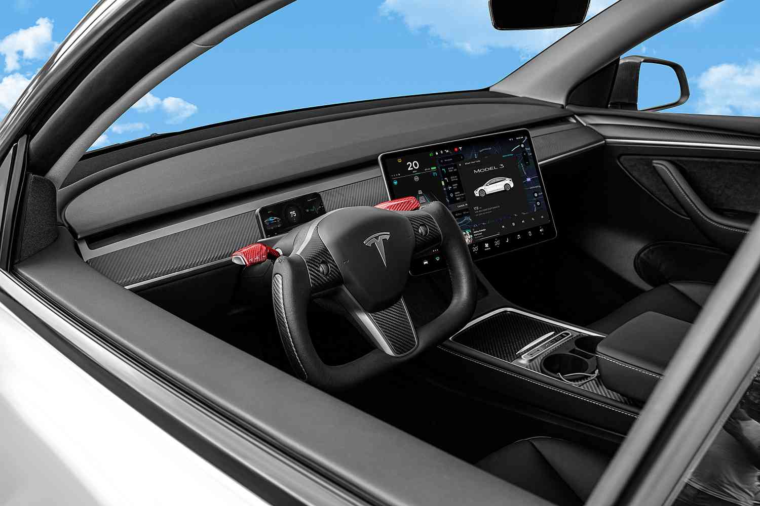 TESERY 요크 카본 파이버 스티어링 휠 for Tesla Model 3 / Y【스타일 34】